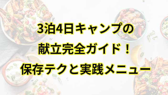 3泊4日のキャンプ献立は、日程に合わせて食材と調理方法を変えることが成功の鍵 です。